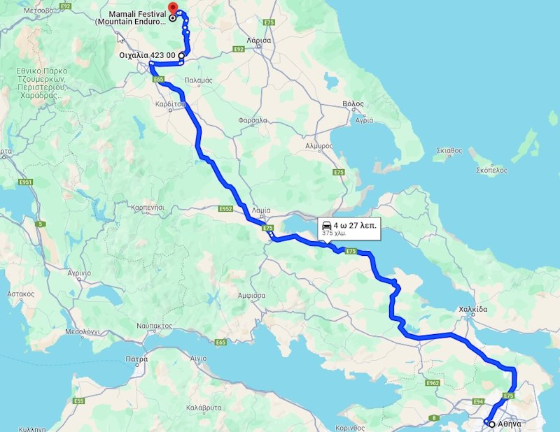 Ακολουθήστε τον Α/Δ E75/Α1 και πριν τη Λαμία ακολουθήστε τον Α/Δ Κεντρικής Ελλάδας E65/Α3. Στο ύψος των Τρικάλων βγείτε από τον E65/Α3 και συνεχίστε στην ΕΟ Λάρισας Τρικάλων/E92/ΕΟ6. Οδηγήστε προς Επαρ.Οδ. Πετρωτού-Οιχαλίας για Οιχαλία. Ακολουθήστε την Επαρ.Οδ. Τρίκαλων-Διάσελλου προς Διάσελλο, Παλιάμπελα, Βερδικούσσα.