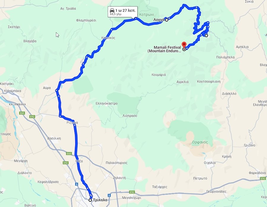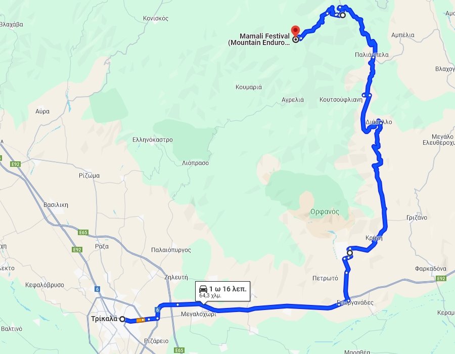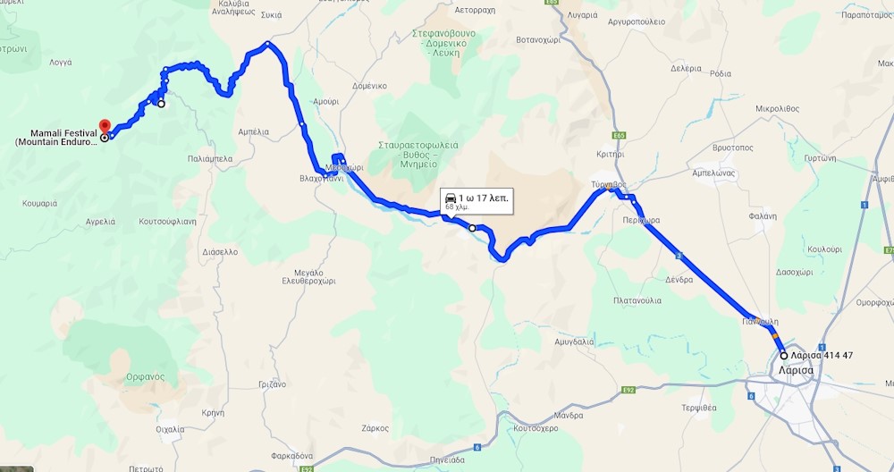 Ακολουθήστε την έξοδο για Κοζάνη, κατευθυνθείτε προς Τύρναβο και ακολουθήστε την E65, Επαρ.Οδ. Τύρναβου-Ελασσόνας.