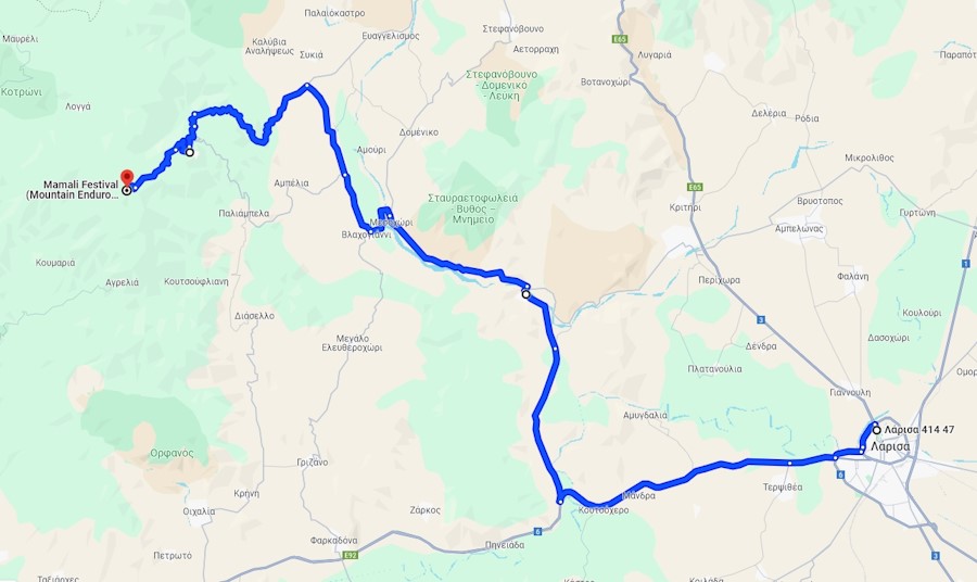 Πάρτε την ΕΟ Λάρισας Τρικάλων/E92 προς Επαρ.Οδ. Δαμάσιου-Κουτσόχερου για Τύρναβο. Ακολουθήστε την Επαρ.Οδ. Δαμάσιου-Κουτσόχερου προς Επαρ.Οδ. Τύρναβου-Ελασσόνας. Συνεχίστε στην Επαρ.Οδ. Τύρναβου-Ελασσόνας προς Βερδικούσσα.